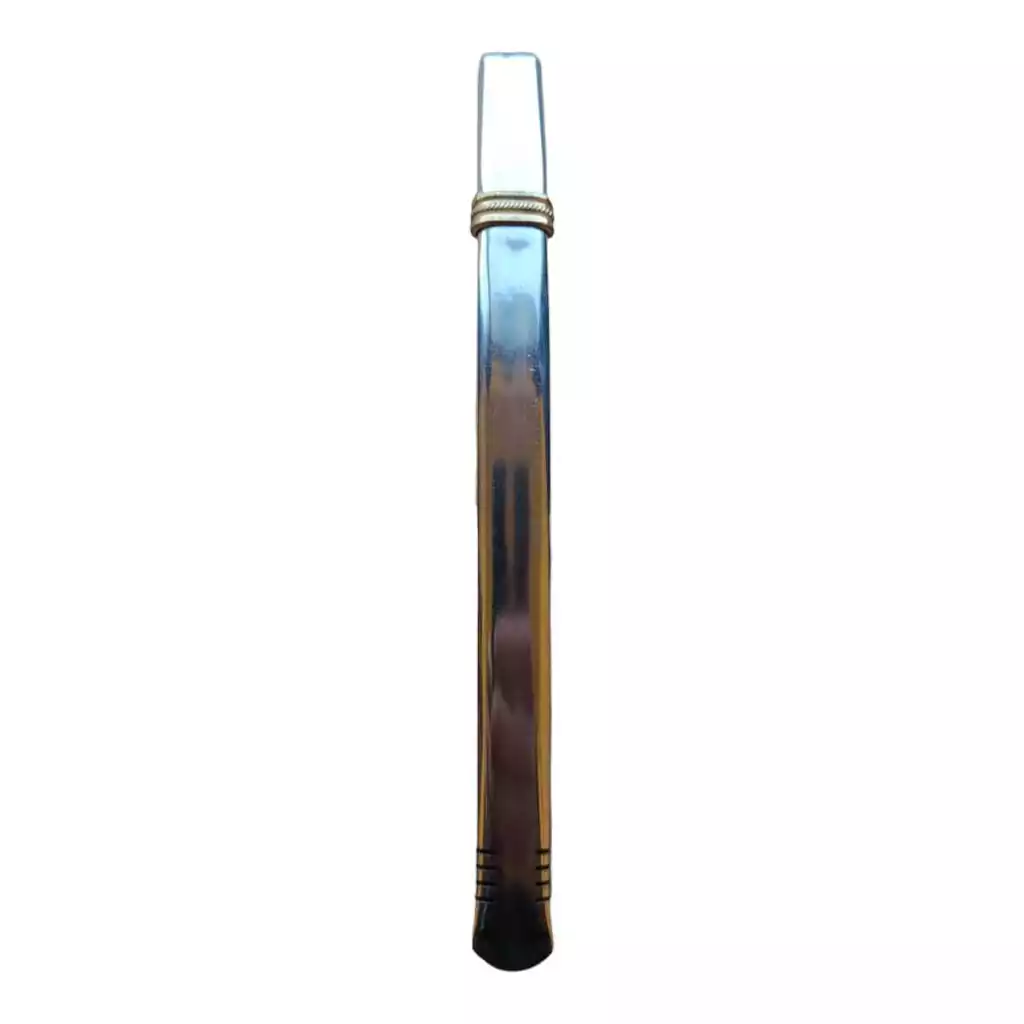 ✨ Material de alta calidad: Fabricada en acero inoxidable con un elegante aplique de bronce que aporta resistencia y un diseño sofisticado. 📏 Medidas ideales: Alto 17 cm, ancho 1.5 cm y largo 0.5 cm, pensada para una experiencia cómoda y práctica.